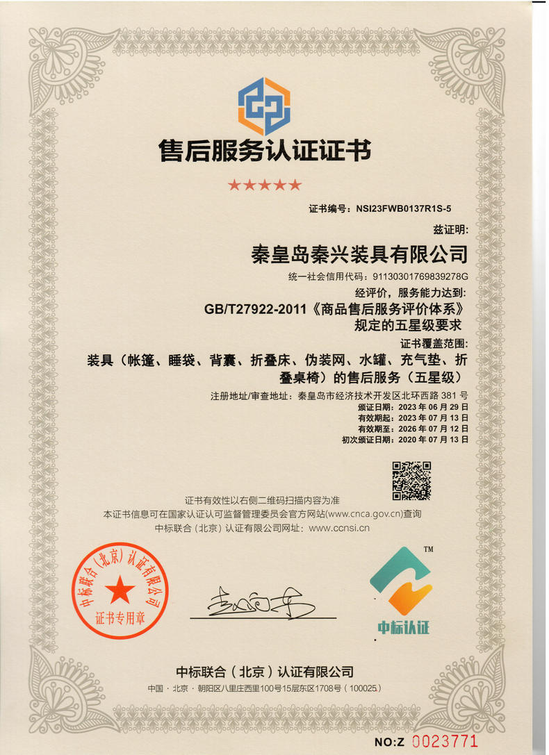 • 售后服務(wù)認證證書